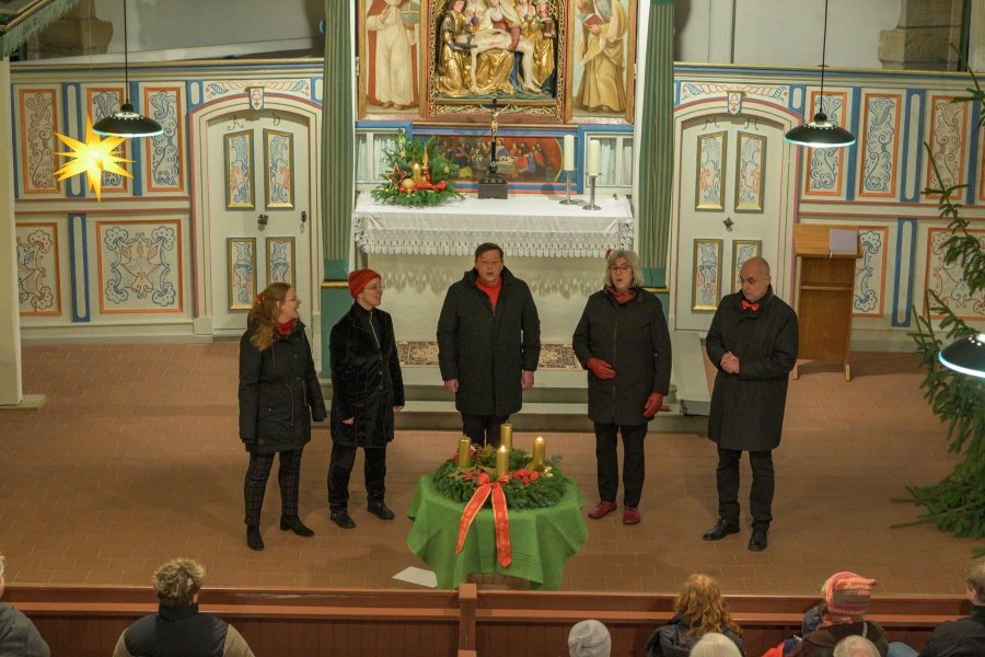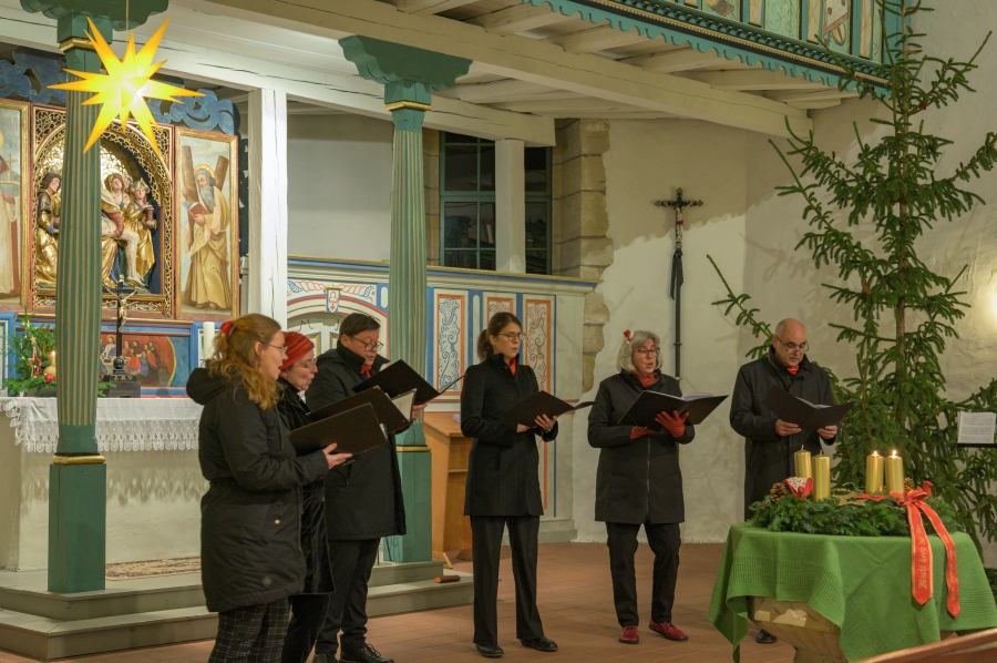 Die bekannten Advents- und Weihnachtslieder kann fast jeder singen, so vertraut sind uns die Weisen. Als das a cappella Vokalensemble Singsang aus Erfurt in einem kleinen Konzert am 2. Advent etliche von ihnen vorgetragen hatte, da rieben sich manche Zuhörer erst mal die Ohren. Denn die 6 Sängerinnen und Sänger des Ensembles sangen die deutschen und internationalen Klassiker modern arrangiert. Sowohl rhythmisch als auch tonal klang vieles neu und doch vertraut, auch wenn die Stimmen gegeneinander liefen oder die Herren als Background-Sänger Instrumente imitierten.